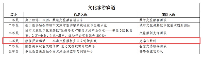 喜報!泰山文旅集團元泰山數(shù)科團隊獲2025年“數(shù)據(jù)要素×”大賽山東分賽文化旅游賽道二等獎